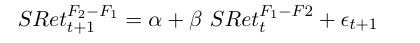 The central insight of the Short-Term Basis Reversal paper is based around the the weekly spread return (return difference) between the first (F1) and second (F2) nearby futures contracts. The weekly return spread is defined as